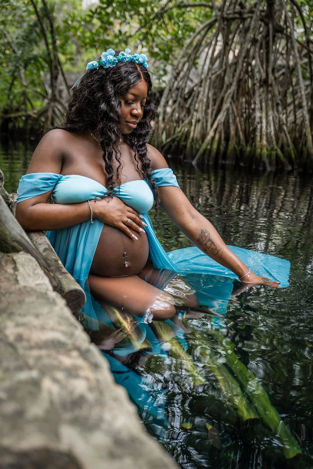 This was much more than just a maternity shoot; it was a special connection between Khaya, nature, and the life that was growing inside of her. In an underwater photoshoot, you are taking your baby on a new first-time adventure; experiencing the cool water's sensation, and appreciating the beauty of nature while getting ready for a new beginning.