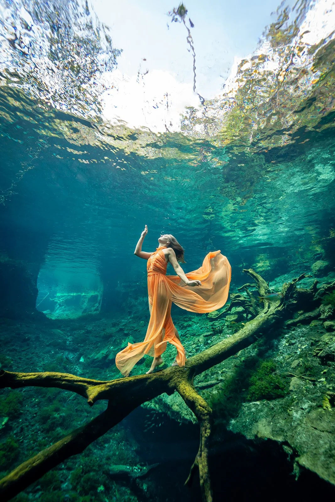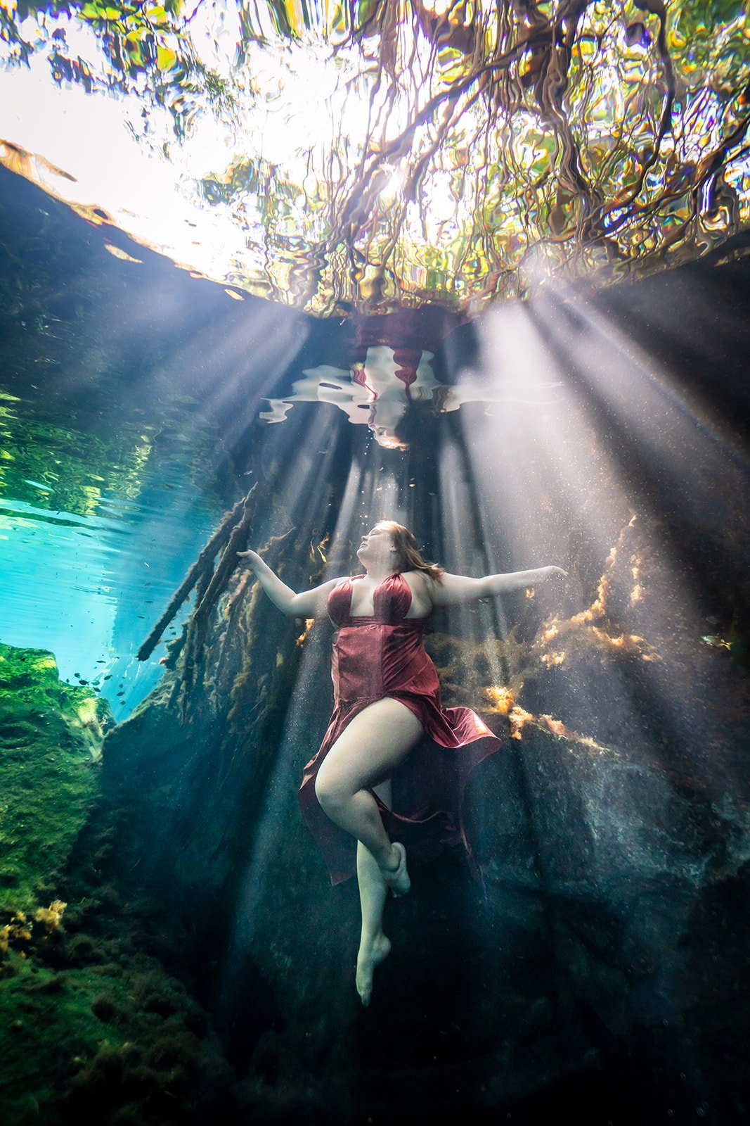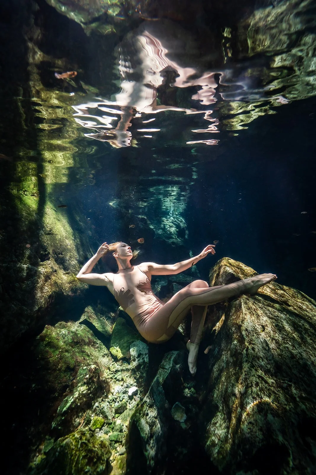 And that’s really the beauty of it; an underwater photoshoot isn’t just about the photos. Surrounded by the crystal-clear cenote waters and the calm of nature, it becomes an experience of mindfulness, empowerment, and pure enjoyment.